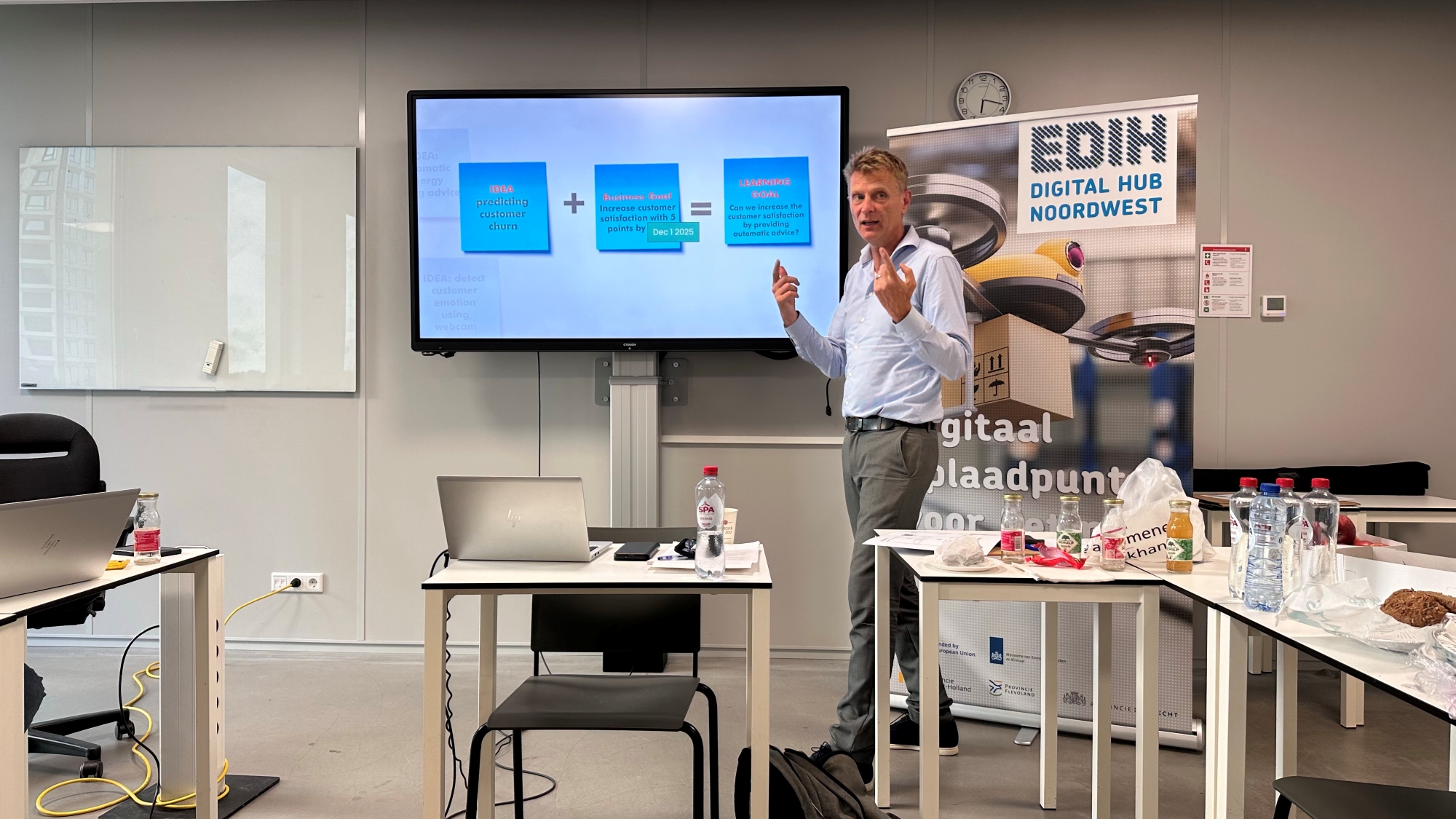 Deze workshop biedt de gelegenheid om onder begeleiding van experts van de EDIH Digital Hub Noordwest het zakelijke en dataperspectief van AI te verkennen en concrete kansen binnen de eigen bedrijfsprocessen te identificeren. Deelnemers vertalen hierbij een geselecteerd idee naar een praktisch uitvoerbaar plan dat als directe basis dient voor verdere innovatie binnen de organisatie.